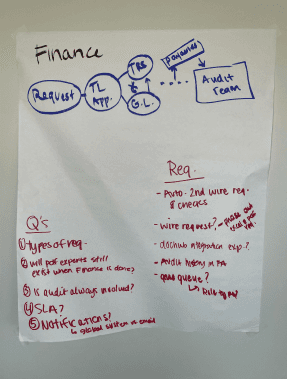 Context: The Finance team is split into three areas: General Ledger, Treasury, and Payables; and the life of a wire follows a (mostly) linear path from one role to the next—but in the current application, the team had virtually no visibility of a wire's status across roles, creating communication issues both internally and with clients.