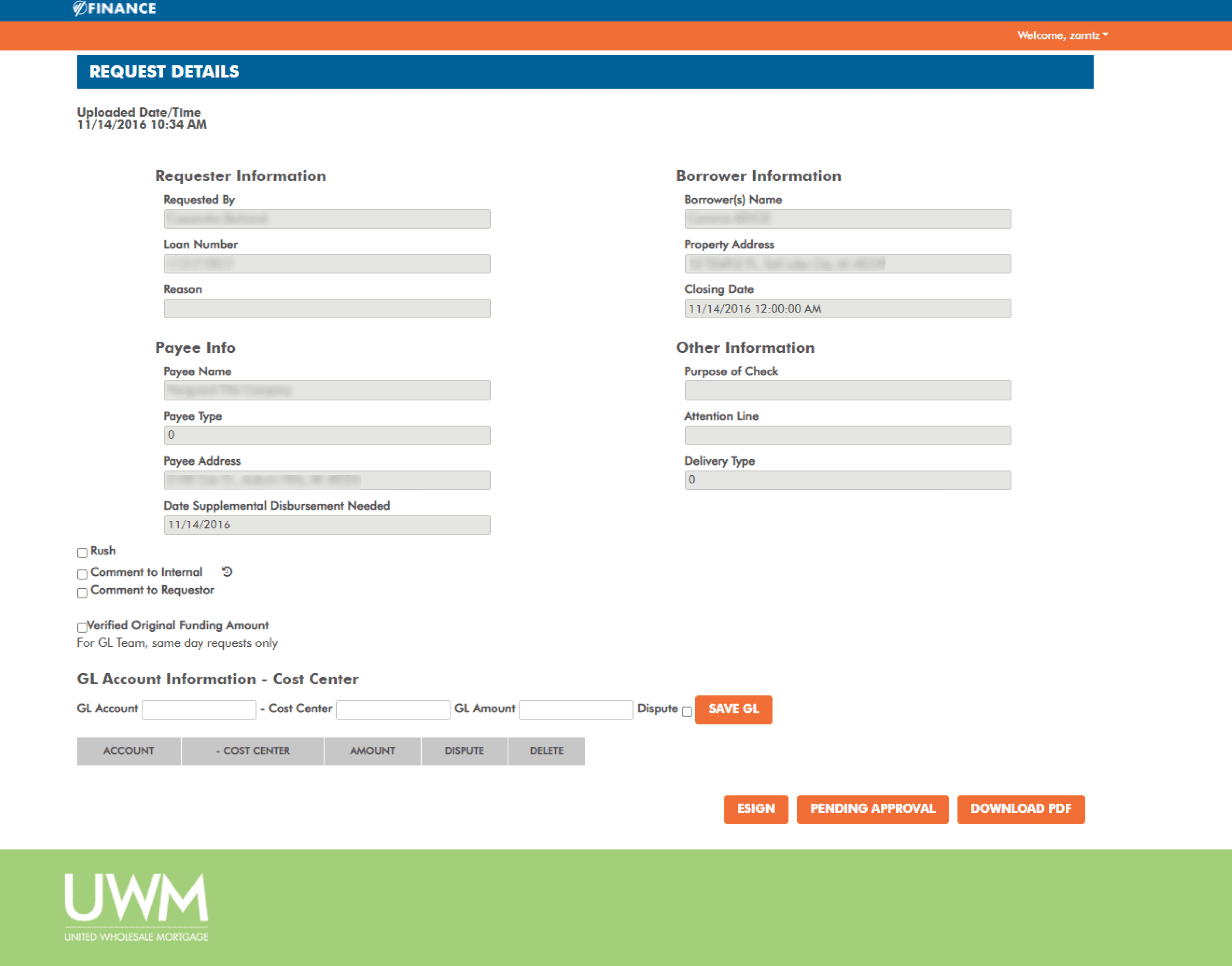 The Finance application is used internally at UWM by the Finance team. In three roles, their tasks include reviewing and approving wire requests, initiating and releasing wires, and preparing receipts for clients and audit teams. This application is used to track the life of a wire transfer from UWM to any external payee. Millions of dollars in transfers travel through this application every day, so the tolerance for error is very low and the risk is very high.